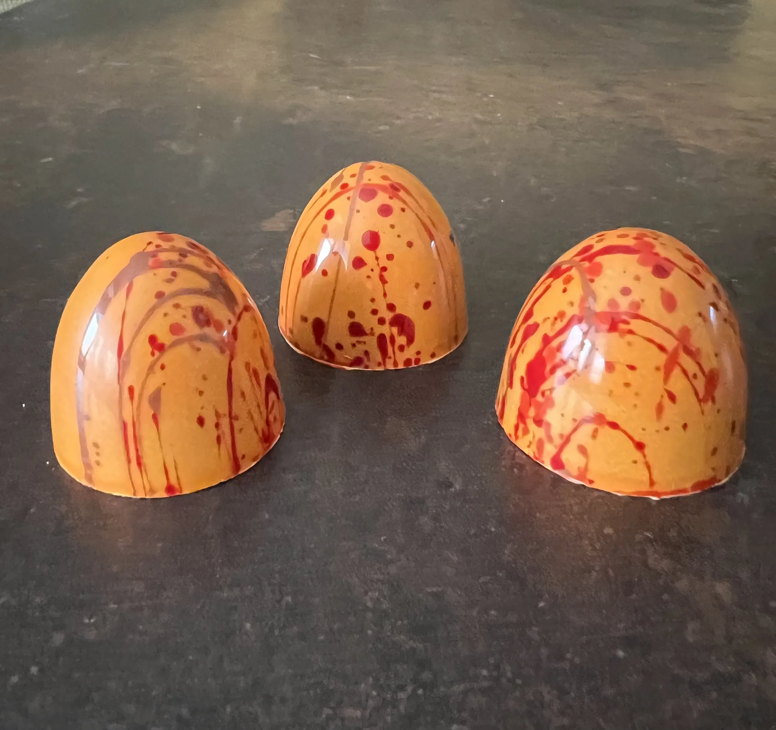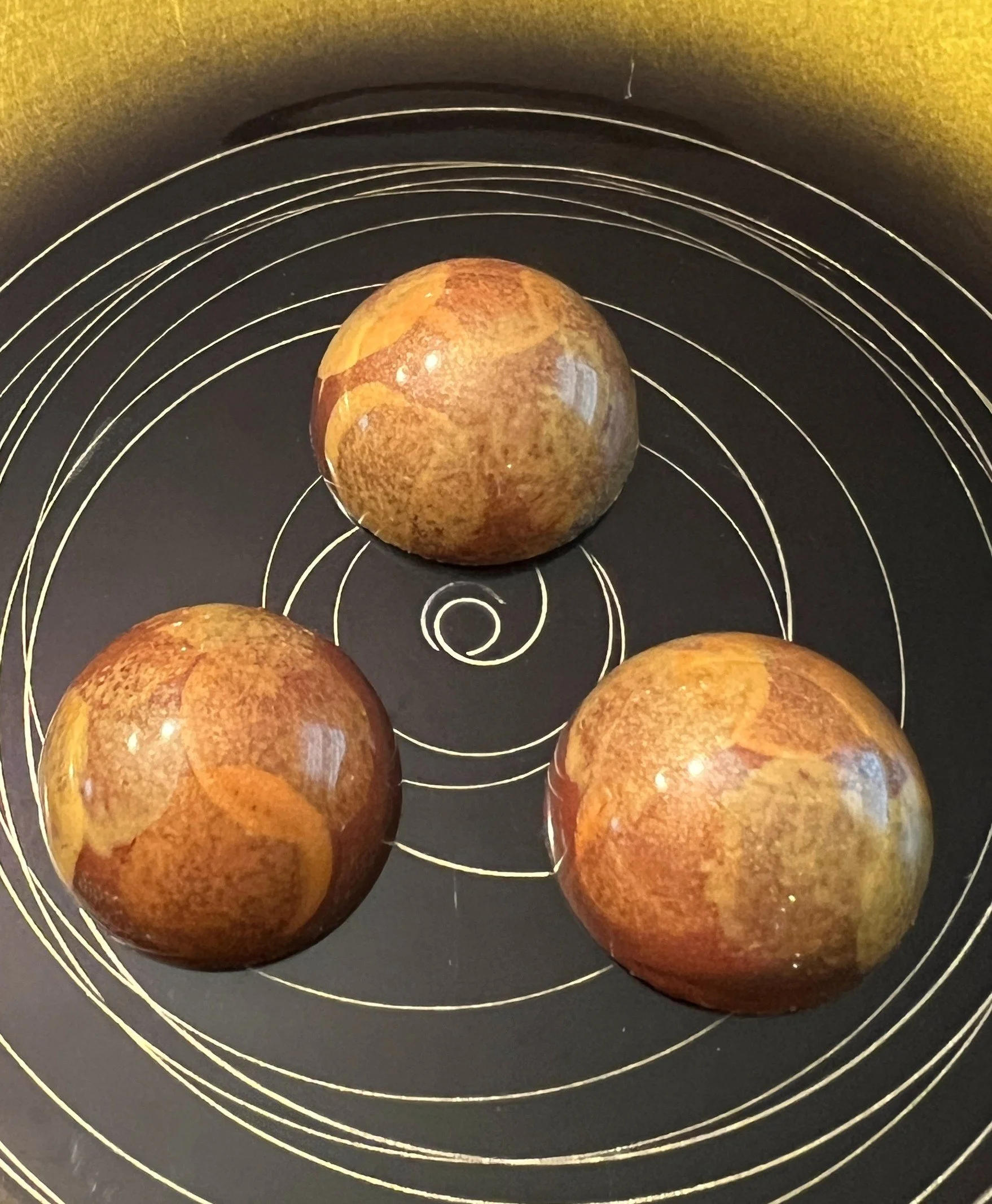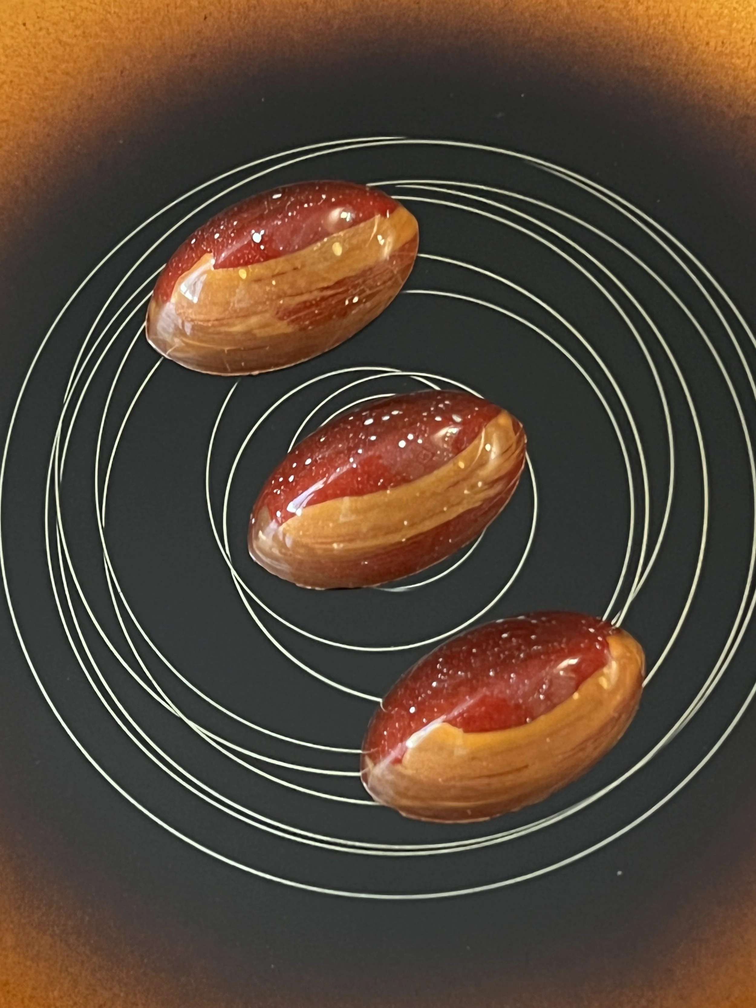 caramelesque-milk chocolate with curry cashew and baru nut praline