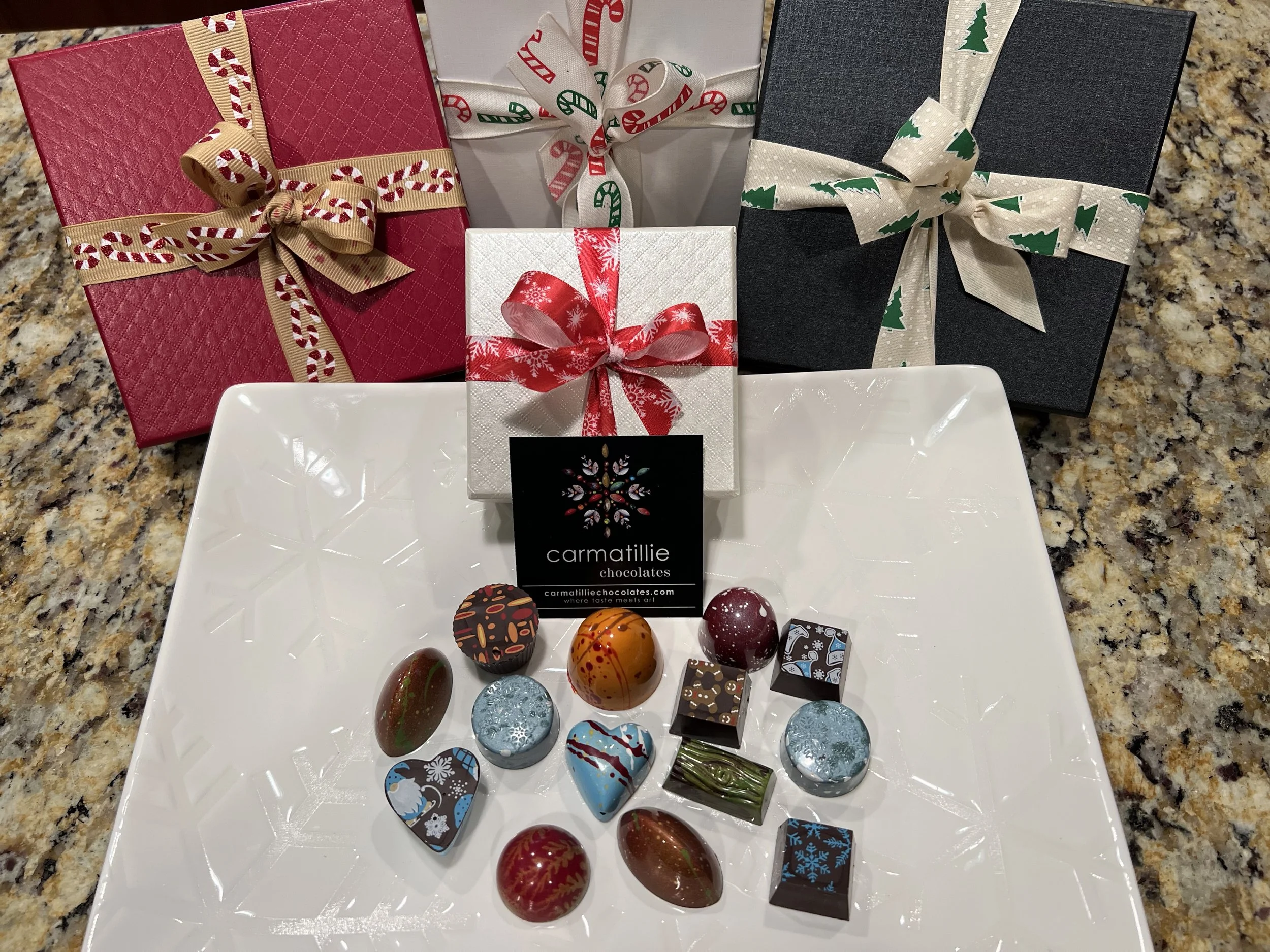 Holiday boxes are available in 4 piece, 6-8 piece, 12-14 piece18 piece and >24 piece boxes You select the flavors or we can do that for you, your choice
